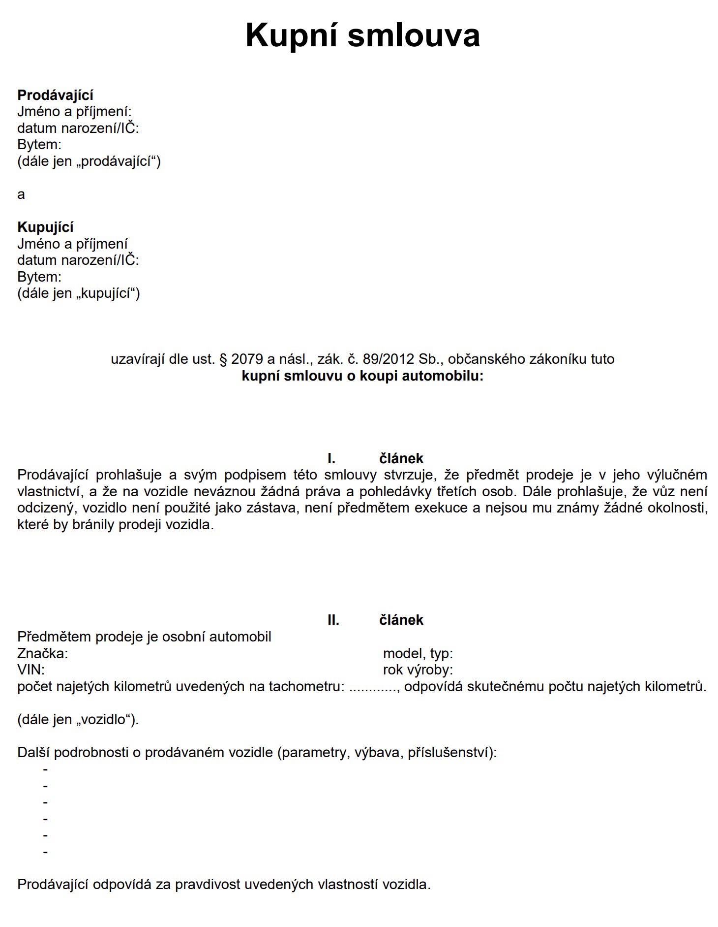 Этот договор купли продажи на авто в Чехии можно скачать бесплатно (PDF/DOC). Ниже — пошаговая инструкция по заполнению, что обязательно указать, частые ошибки и что делать после подписания.